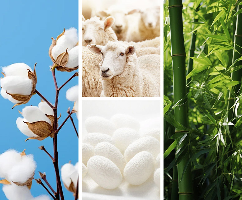 Abrace la vida ecológica comenzando sus proyectos con materiales sostenibles. Nuestros productos utilizan materiales confiables y sostenibles que incluyen poliéster, bambú, seda, tencel y lana, todos elegidos por sus beneficios y calidad ambientales.